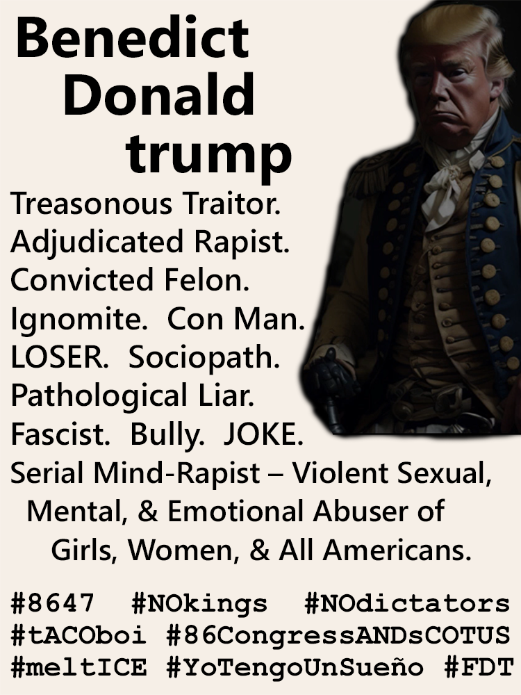Benedict Donald trump is a Treasonous Traitor by any decent description and definition. If you don't